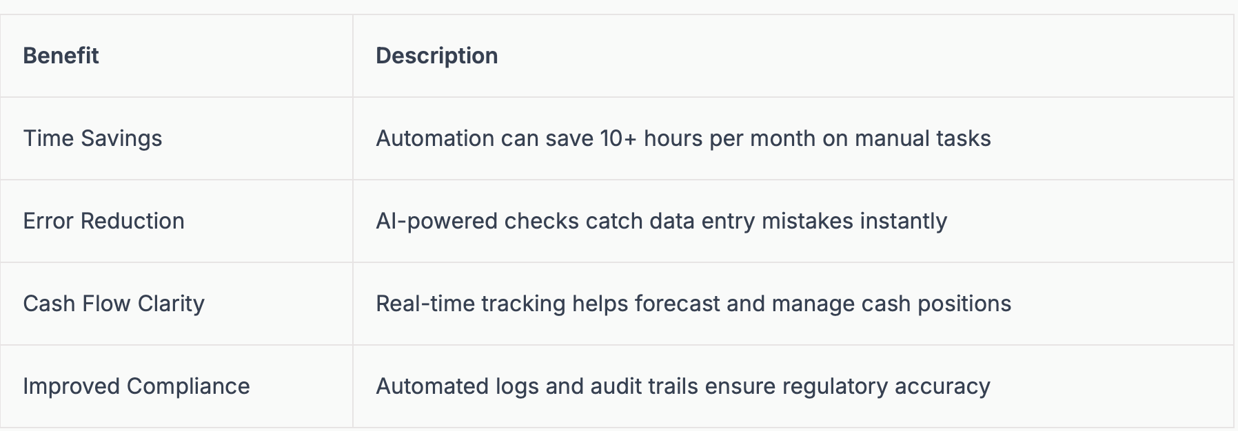 Below is a summary table highlighting the core benefits automation brings to bookkeeping for consultants: