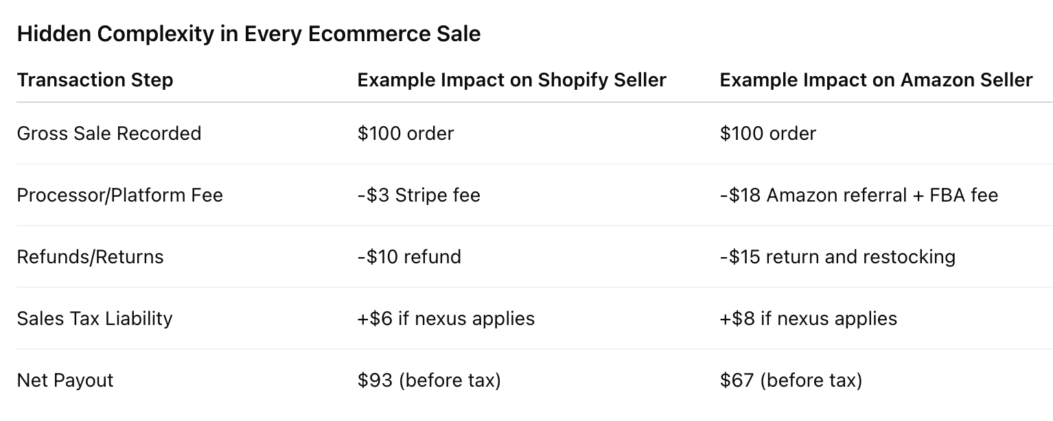 Every time your ecommerce platform registers a sale, there’s a lot more happening behind the scenes than just money changing hands. Each transaction triggers a web of financial activity: payment processing fees are deducted, sales tax may need to be collected (depending on your nexus and the buyer’s location), and your inventory management system must update in real time. If you’re not tracking these moving parts, your financial records will quickly become inaccurate - and that’s a fast track to compliance headaches and profit leaks.