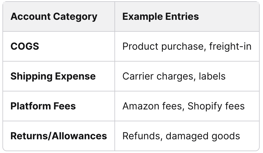 Chart of Accounts Setup for COGS, Shipping, Platform Fees, Returns