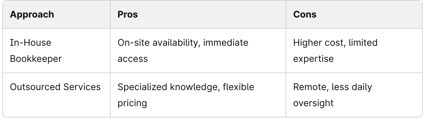 Ecommerce sellers often weigh hiring in-house staff against outsourcing. In-house bookkeepers provide daily oversight but add fixed costs for salary, benefits, and training - and many lack ecommerce-specific expertise.